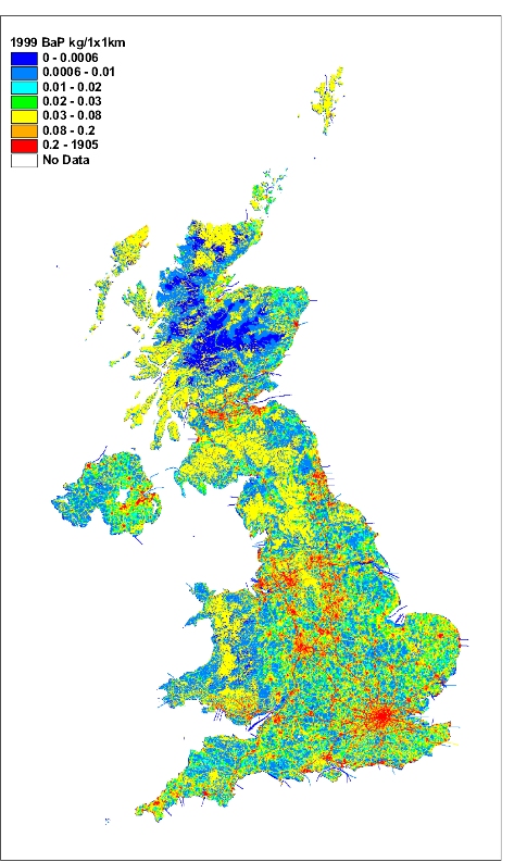 Figure 6.1 Spatially Disaggregated UK Emissions of Benzo[a]pyrene